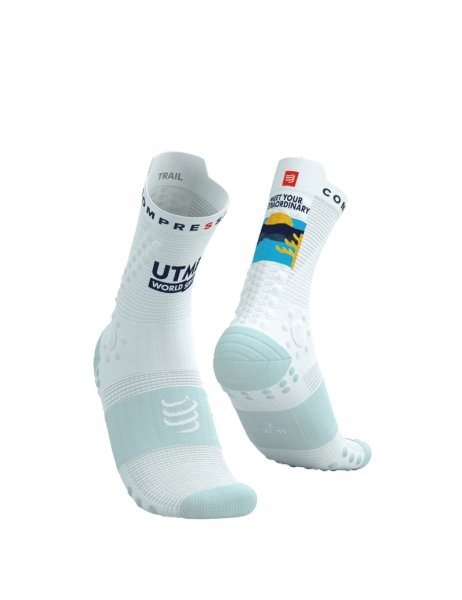 • COMPRESSPORT Skarpetki do biegania trailowe PRORACING SOCKS V4 TRAIL UTMB 2025 white ice flow