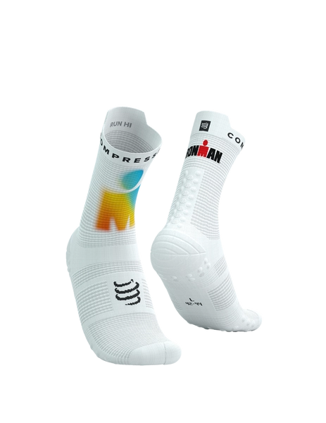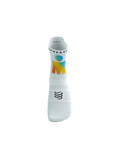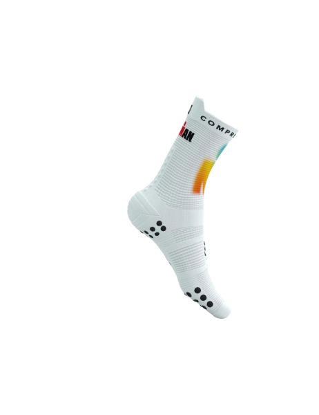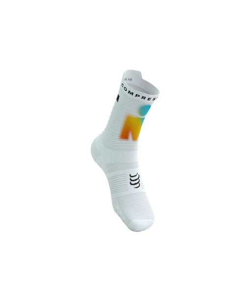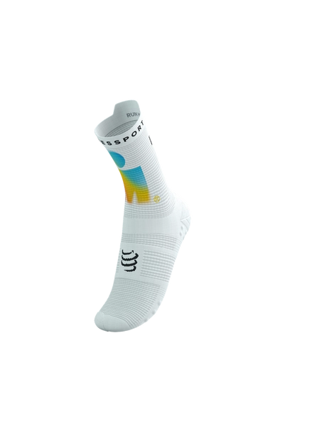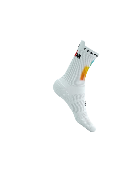 • COMPRESSPORT Skarpetki do biegania wysokie PRORACING SOCKS V4 RUN HIGH IRONMAN 2025 white/sunrise